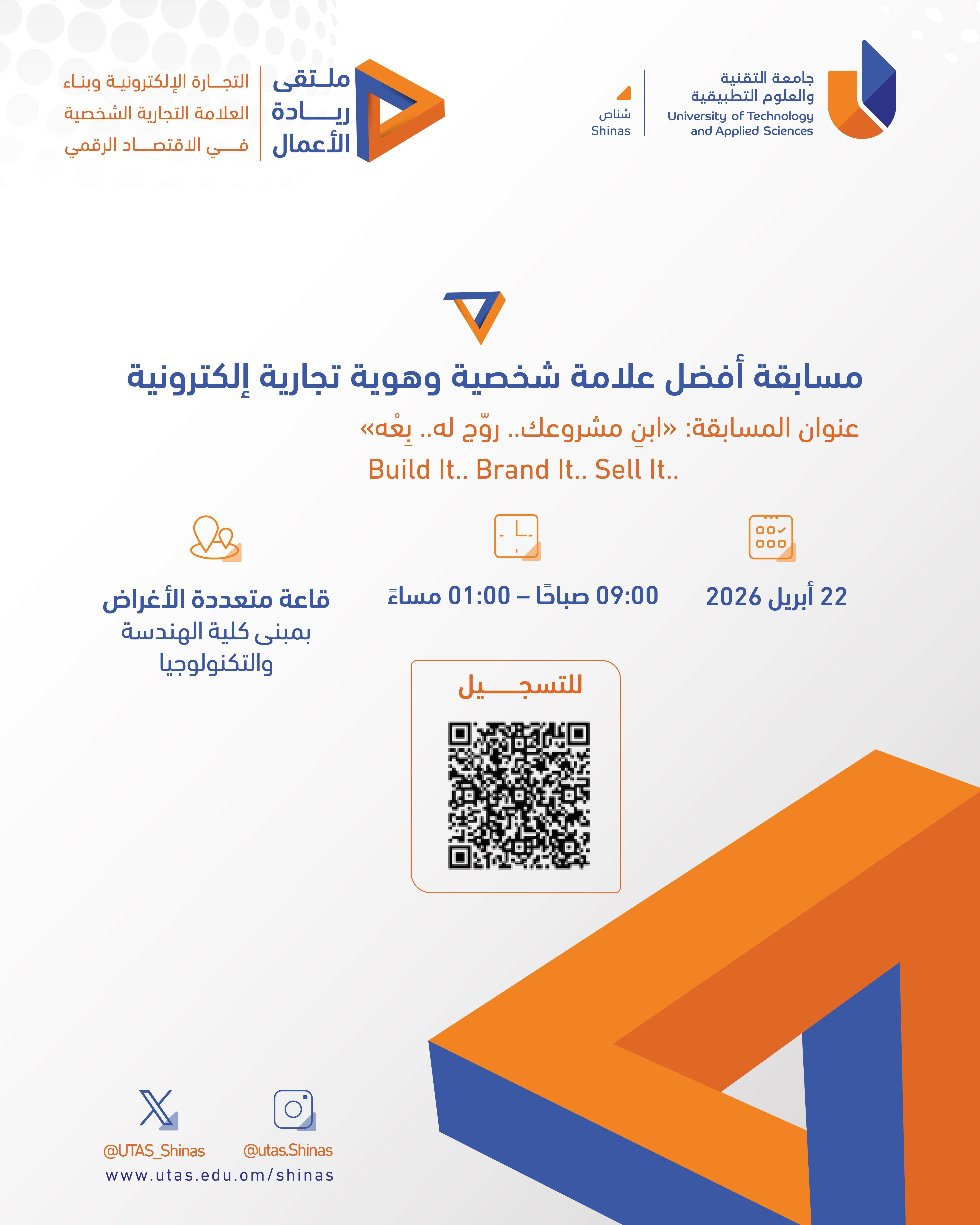 Wednesday, April 15, 2026 / Categories: Announcements, Business Studies مسابقة أفضل علامة شخصية وهوية تجارية إلكترونية Previous Article ملتقى ريادة الأعمال Next Article برنامج تطوير المهارات والاستعداد لسوق العمل Print 10 Rate this article: No rating