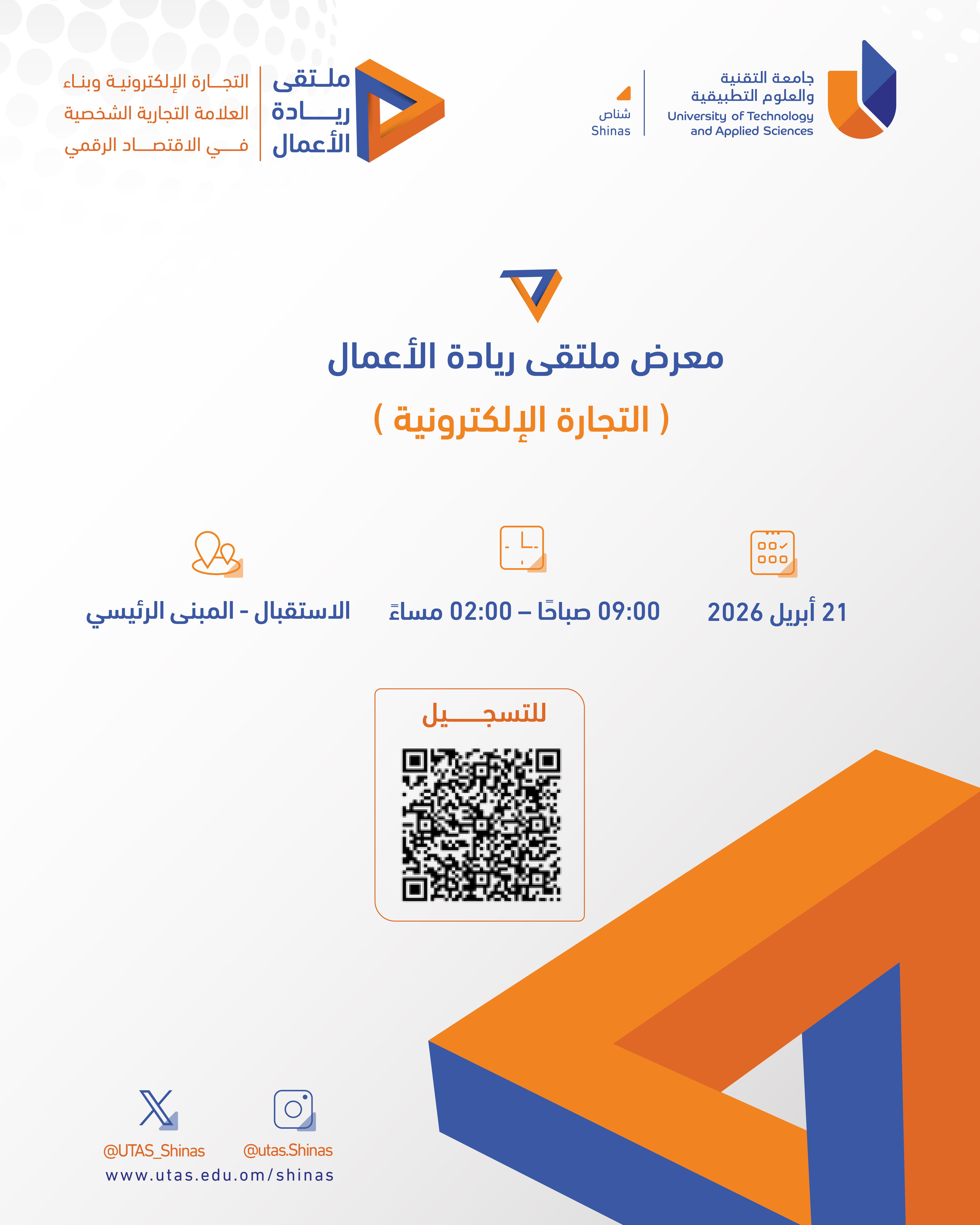 Wednesday, April 15, 2026 / Categories: Announcements, Business Studies معرض ملتقى ريادة الأعمال ( التجارة الإلكترونية ) Previous Article Creating Rich Digital Content for Teaching & Research Next Article الجلسة النقاشية: مستقبل التجارة الإلكترونية في عُمان Print 8 Rate this article: No rating