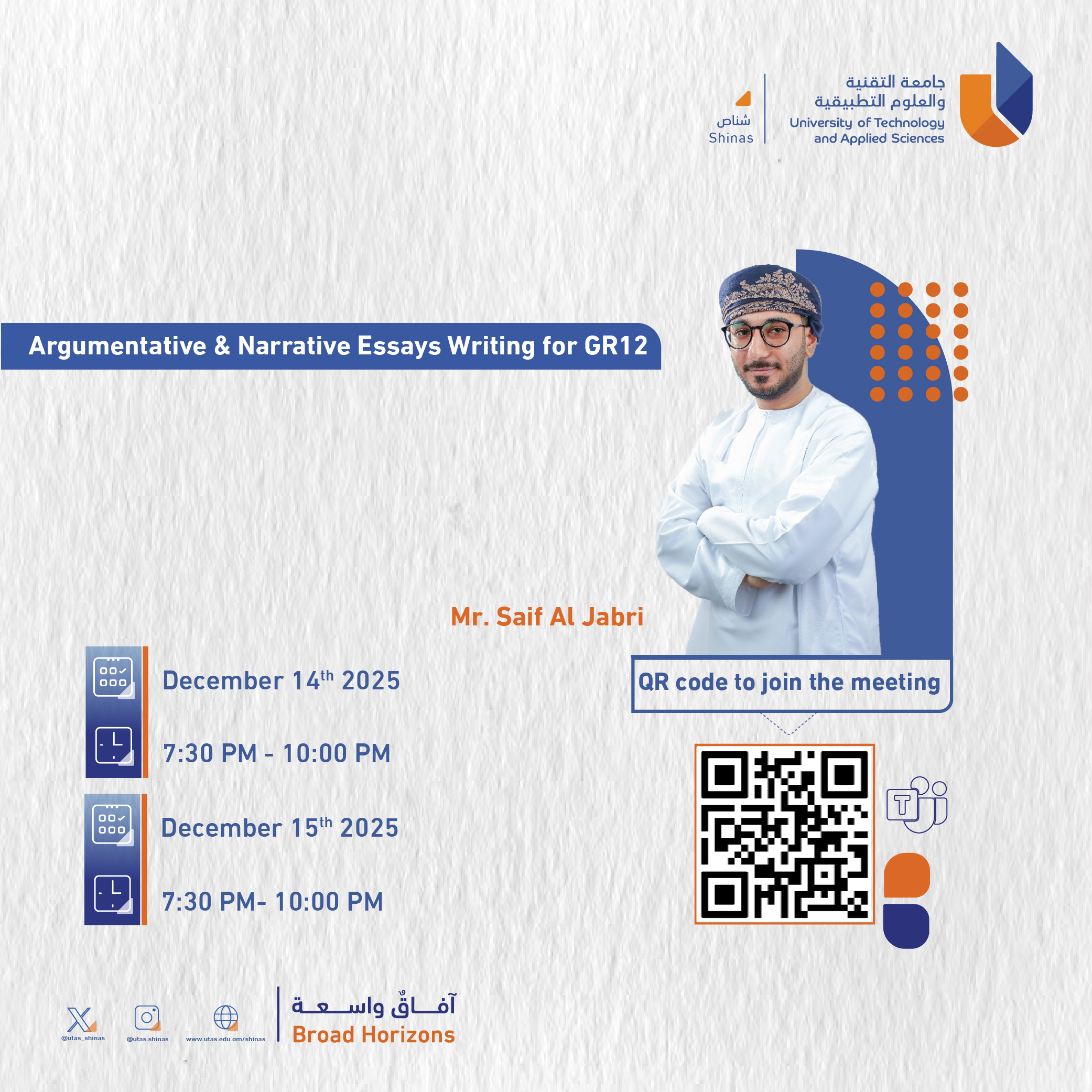 Wednesday, December 10, 2025 / Categories: Announcements Argumentative & Narrative Essays Writing for GR12 Previous Article DIGITAL CV MASTERY: ALIGNING YOUR PROFILE WITH OMAN'S IT INDUSTRY REQUIREMENTS Next Article Grade 12 Preparation Sessions Print 9 Rate this article: No rating