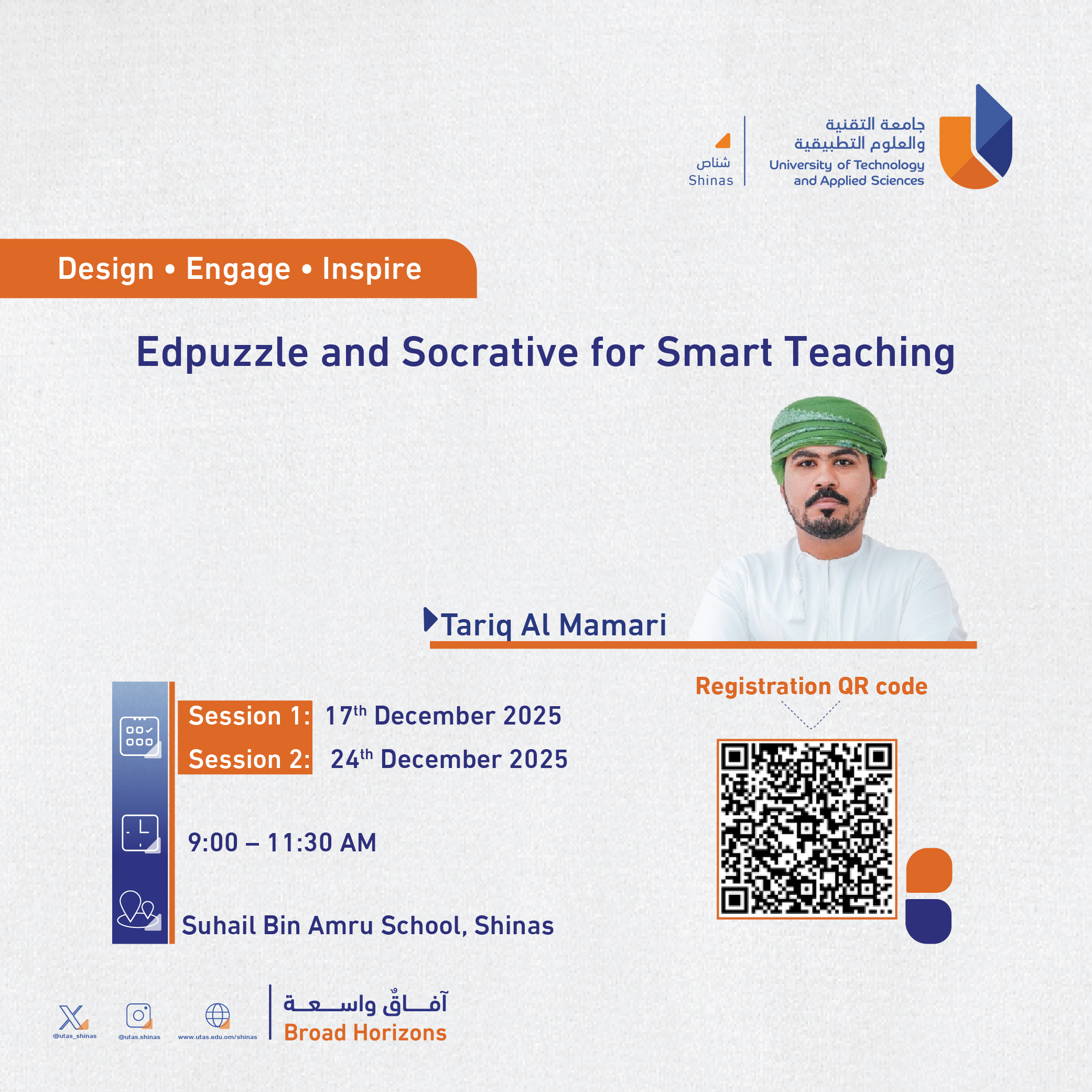 Wednesday, December 10, 2025 / Categories: Announcements Edpuzzle and Socrative for Smart Teaching Previous Article منهجيات المقابلات الوظيفية: تدريب ومحاكاة Next Article IELTS Preparation Workshop: Skills, Tips & Techniques Print 7 Rate this article: No rating