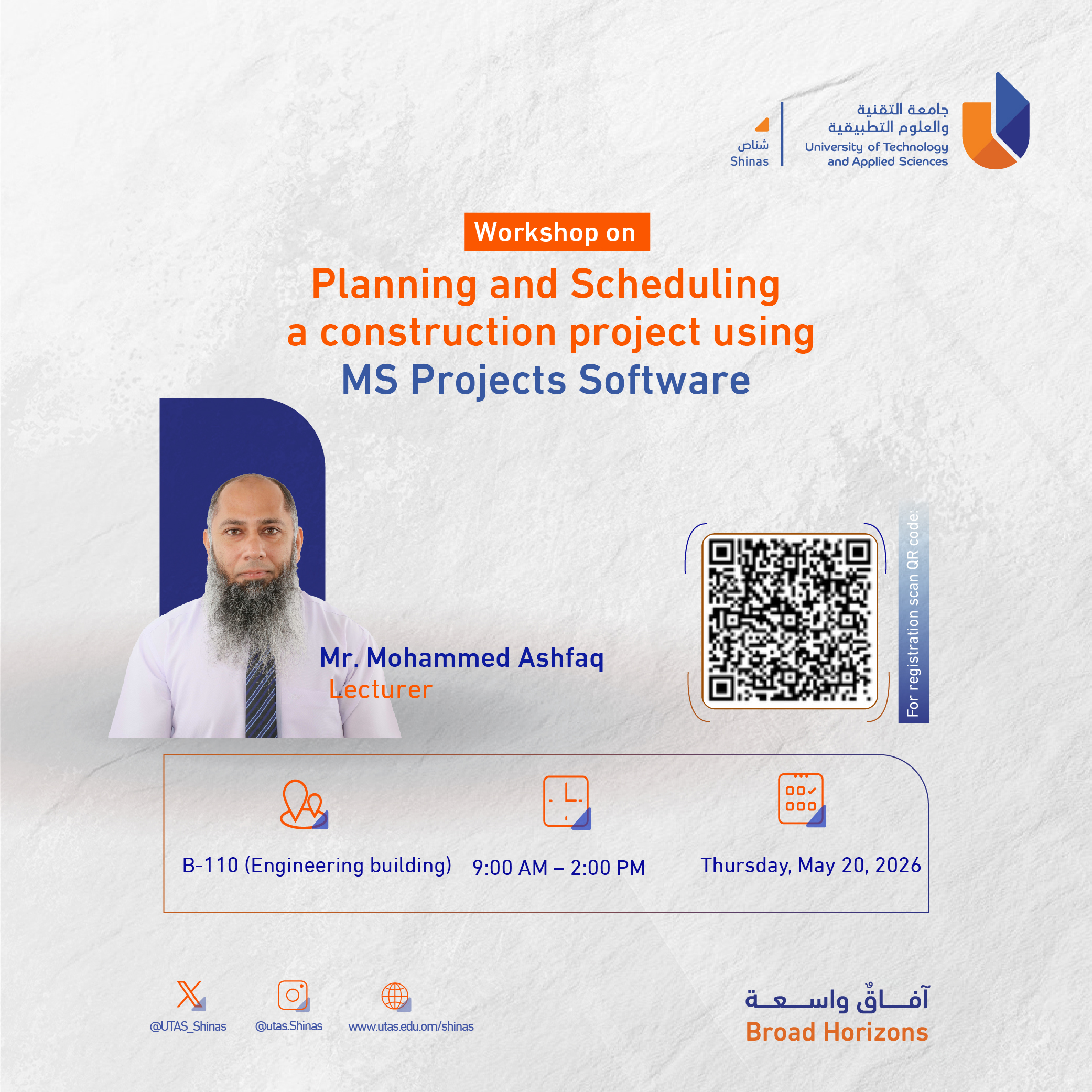 Monday, March 9, 2026 / Categories: Announcements, Engineering Planning and Scheduling a construction project using MS Projects Software Previous Article دورة تدريبية عن : رسم المباني بإستخدام برنامج الاوتوكاد - ثنائي الأبعاد Next Article Webinar on Neutrosophic Graphs: A New Dimension to Graph Theory Print 14 Rate this article: No rating