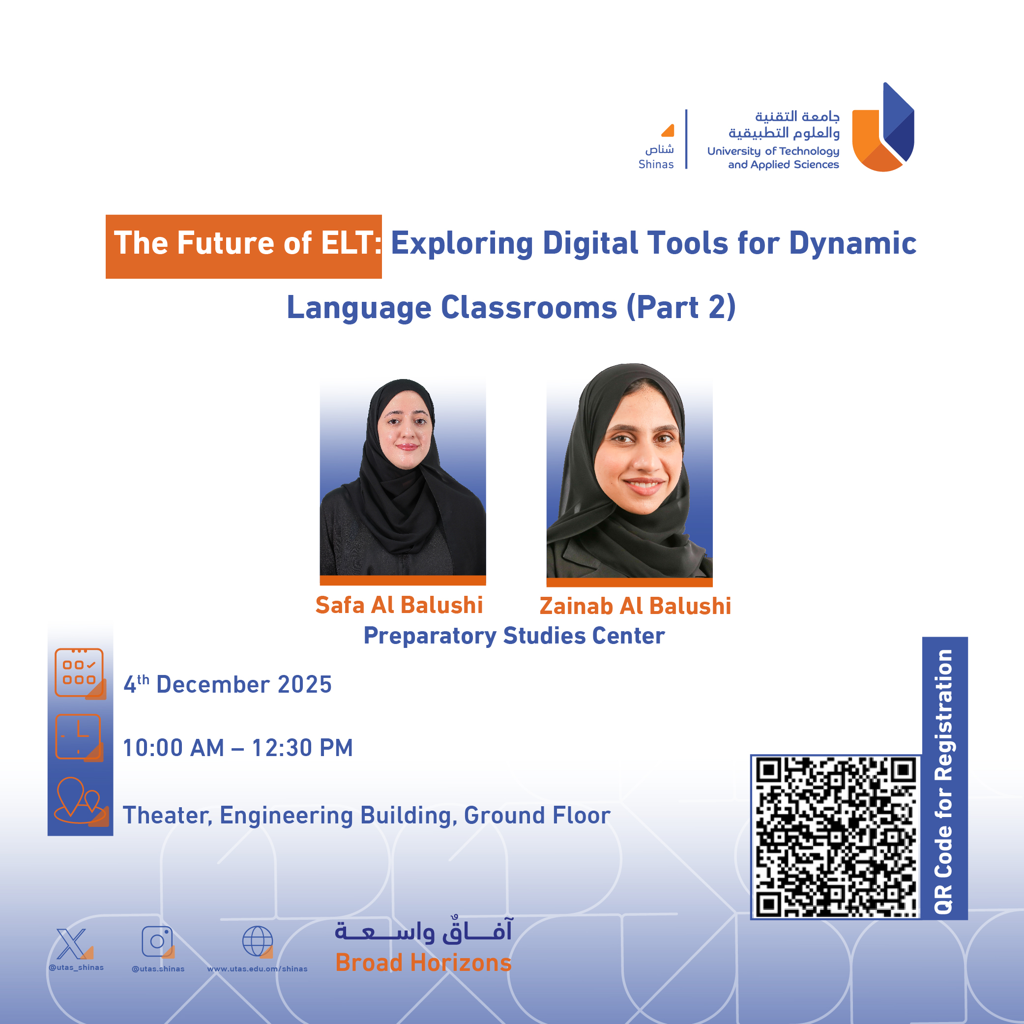 Thursday, December 4, 2025 / Categories: Announcements, Preparatory Studies Centre The Future of ELT: Exploring Digital Tools for Dynamic Language Classrooms (Part 2) Previous Article Empowering the Modern Academe: Tools and Techniques for Creating Better Digital Content Next Article Dynamic Assessments with Calculated MCQs in Moodle Print 8 Rate this article: No rating