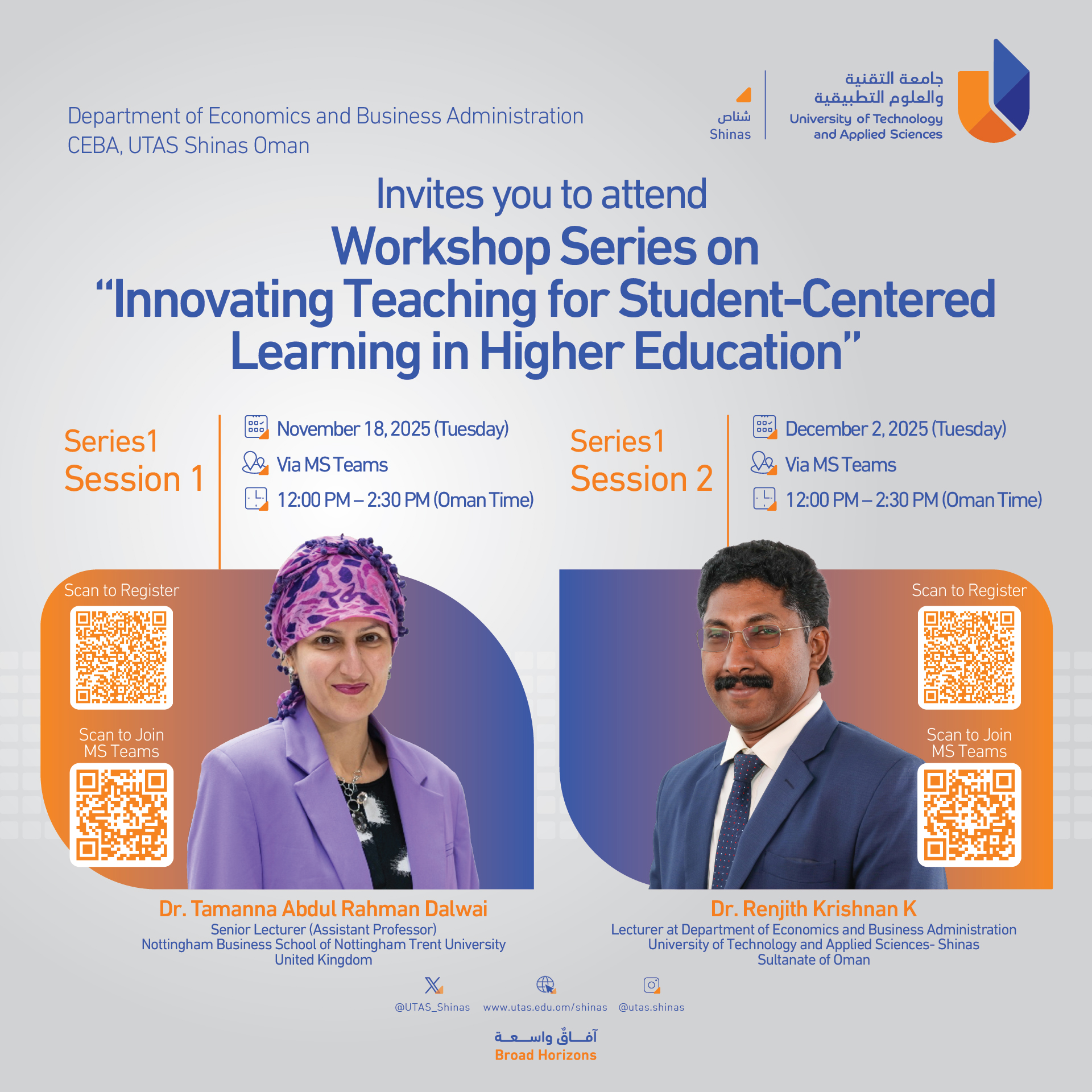 Thursday, November 13, 2025 / Categories: Announcements, Business Studies Workshop Series on "Innovating Teaching for Student-Centered Learning in Higher Education" Previous Article بوصلة المستقبل: اكتشف أهمية الحياة الجامعية وكيفية تحقيق التفوق والريادة Next Article Agentic Al with Open Al Agent Builder Print 30 Rate this article: No rating