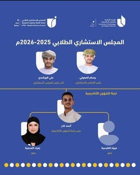 أعضاء المجلس الاستشاري الطلابي للعام الأكاديمي 2026/2025 schedule Sunday, November 2, 2025 Announcement Read more