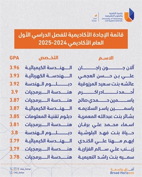 قائمة الاجادة الاكاديمية للفصل الدراسي الاول للعام 2025/2024 schedule Sunday, November 9, 2025 Announcement Read more