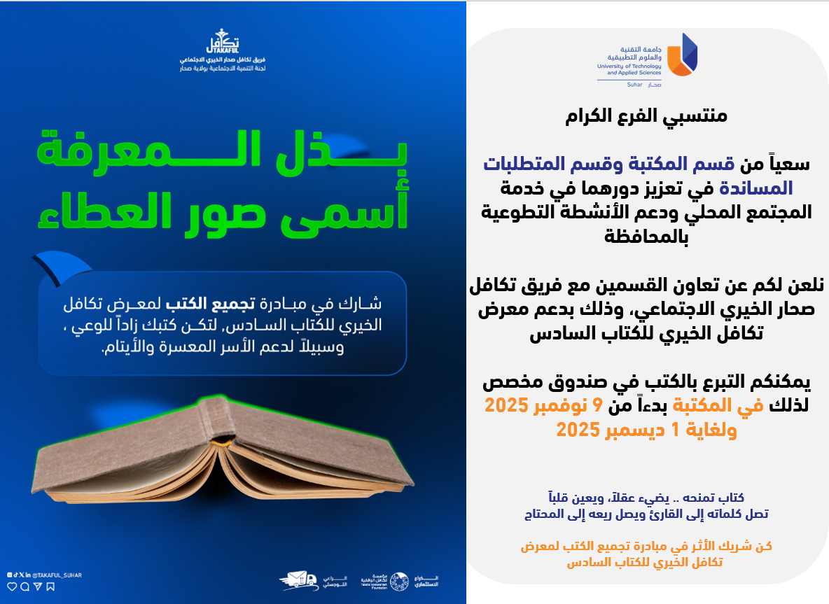 Sunday, November 9, 2025 / Categories: Announcement اعلان تجميع كتب لصالح فريق تكافل Previous Article تهنئة جماعة المسرح Next Article مبادرة شهر اللغة العربية Print 18 Rate this article: 4.0