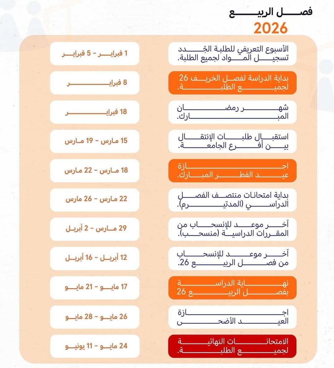 Monday, January 26, 2026 / Categories: Announcement فصل الربيع 2026 Previous Article السجل المهني للطلبة Next Article تهنئة Print 78 Rate this article: 5.0