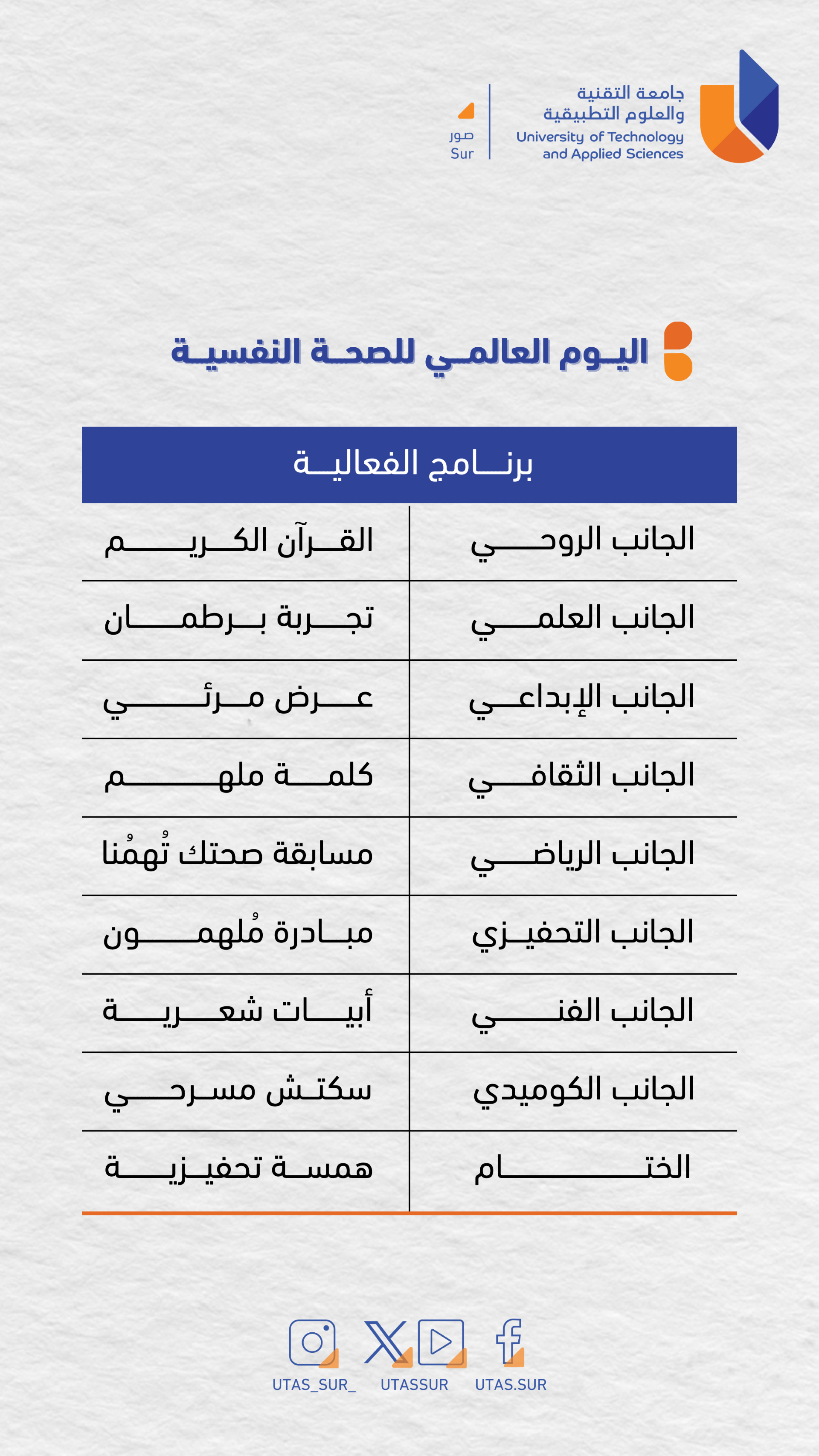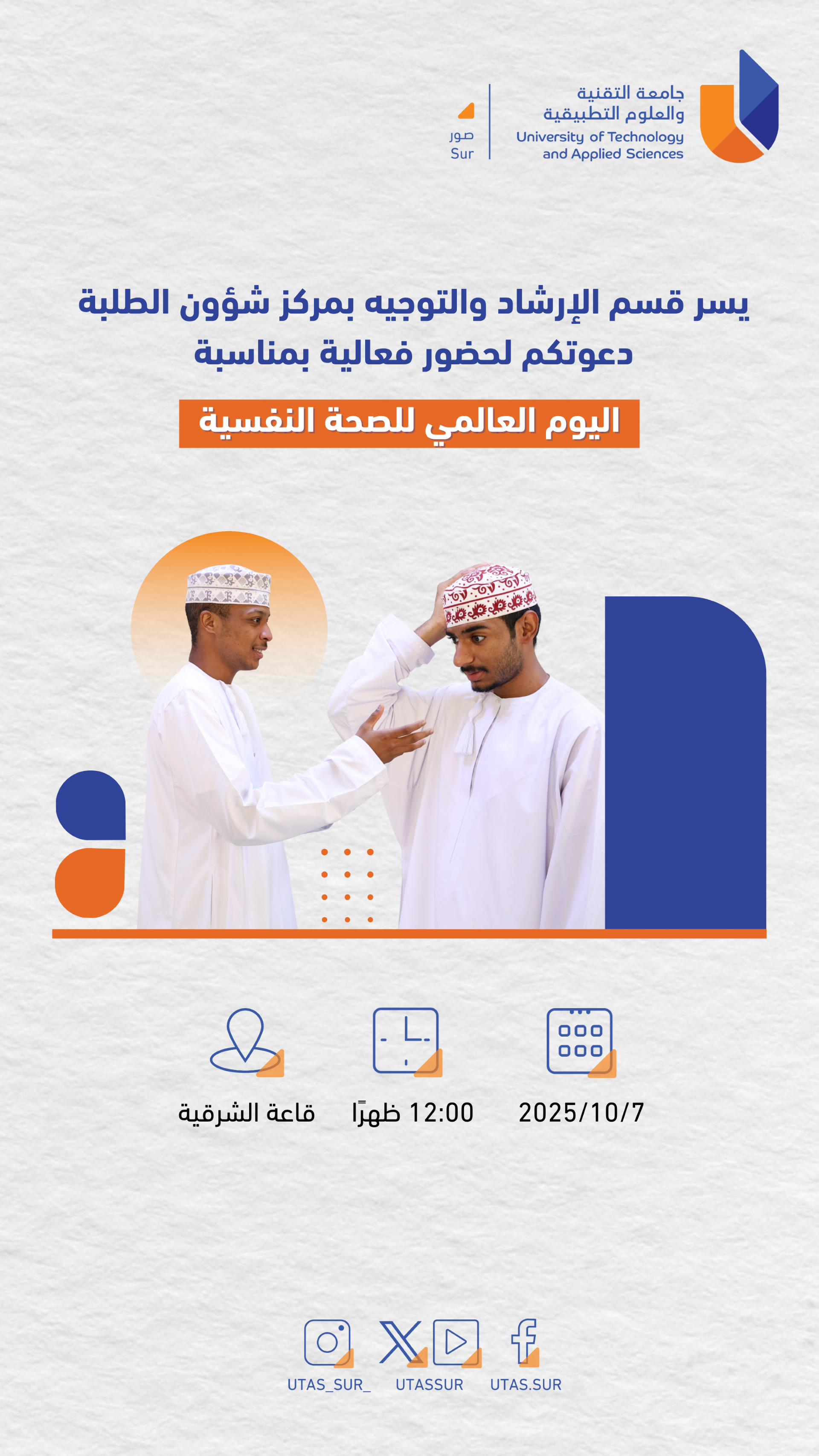 Tuesday, October 7, 2025 / Categories: Announcements, Student Activities فعالية اليوم العالمي للصحة النفسية Previous Article Research Assistant Job Advertisement Print 12